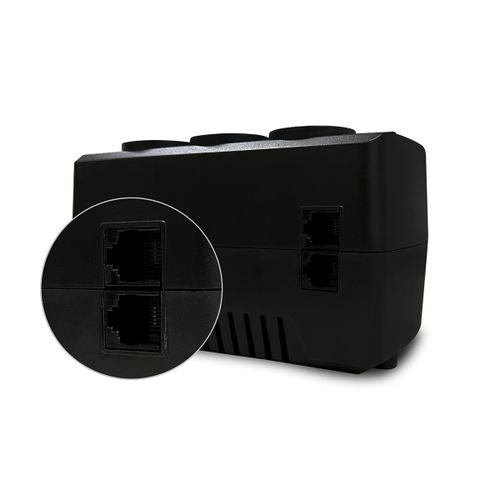 Incluye un puerto RJ-45 que protege redes Ethernet, evitando daños en computadoras, módems, routers y sistemas de vigilancia causados por sobretensiones que puedan ingresar por la línea de datos.